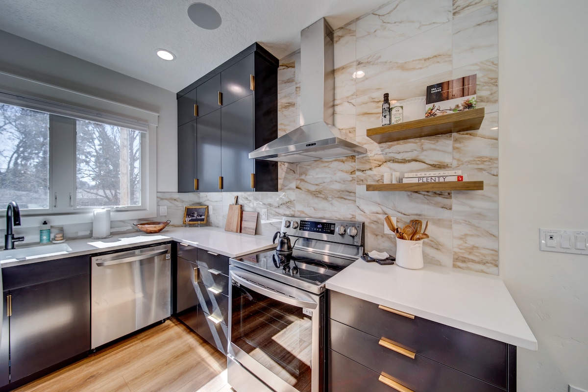Pamper yourself in a luxurious 700 sq ft single family home in the heart of the North End. Creative touches welcome you in this home away from home, such as Viking appliances, countertops made of wood from a bowling alley and barn doors to separate the rooms. Go socialize with a two-block walk to 13th St Pub and Hyde Park just a few blocks away. Orshut out the world with a romantic gas powered fireplace, 800 Mbps Internet and high tech touches like Alexa Show. Ride an available cruiser bike!