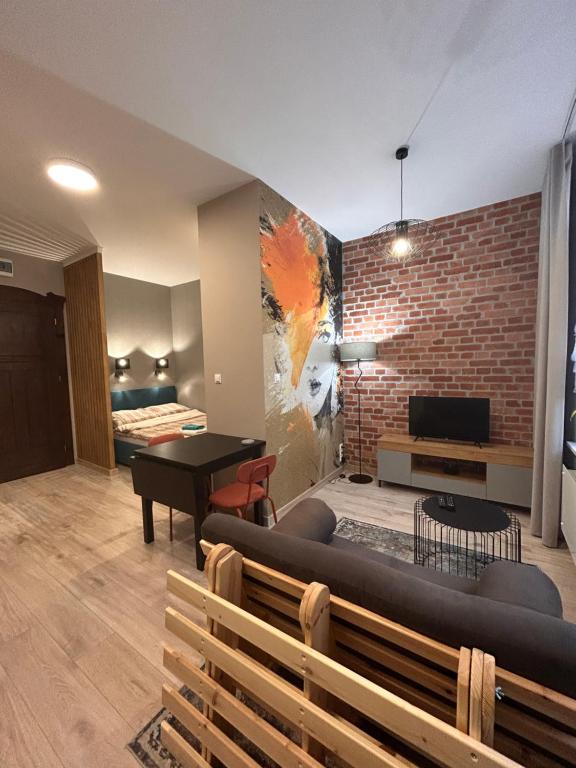 Un apartament evocador amb un alt nivell, situat en una casa de lloguer al centre de Bolesławiec, a 450 metres del mercat. Passejar pel parc és a només 5 minuts. Una gran sala d'estar connectada a un menjador i una cuina petita funcional és el lloc perfecte per passar el teu temps lliure. Un dormitori independent amb un llit doble gran i un sofà llit a la sala d'estar per a 2 persones et permet allotjar-te per a 4 persones. L'apartament està equipat amb tots els electrodomèstics, plats i productes d'higiene necessaris. Wifi gratuït.