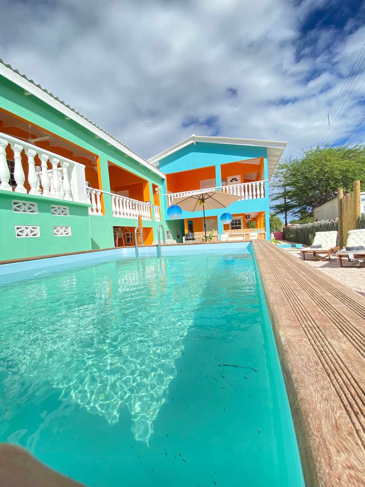 Increïble apartament de 2 habitacions davant del mar amb tot el que necessites per gaudir d'unes vacances fantàstiques. Platja de sorra privada davant del complex amb fàcil accés a l'oceà. Piscina doble amb gandules per gaudir de les increïbles postes de sol després d'un "dia dur" de busseig , windsurf , kitesurf o potser relaxant. Situat al sud de l'aeroport de Flamingo, a prop dels nostres famosos llocs d'immersió al sud i a només 12 minuts en cotxe de Jibe City o Atlantis Kite Beach