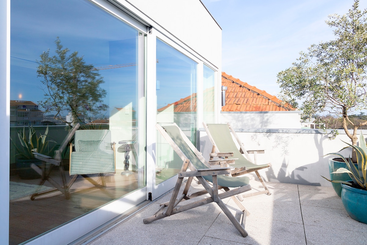 Àtic d'alta qualitat de dos dormitoris al centre de la ciutat de Porto. Una opció increïble per a famílies petites, amics, parelles o nòmades digitals que vulguin explorar la ciutat amb una gran comoditat i estil. Què has de saber: - Terrassa molt agradable amb gandules i taula per menjar - A només uns passos de l'estació de metro. - Els amfitrions que sempre responen i milloraran la teva experiència a la ciutat. - Wifi fiable d'alta velocitat. - El llit individual de la segona habitació s'estén fins a un llit doble