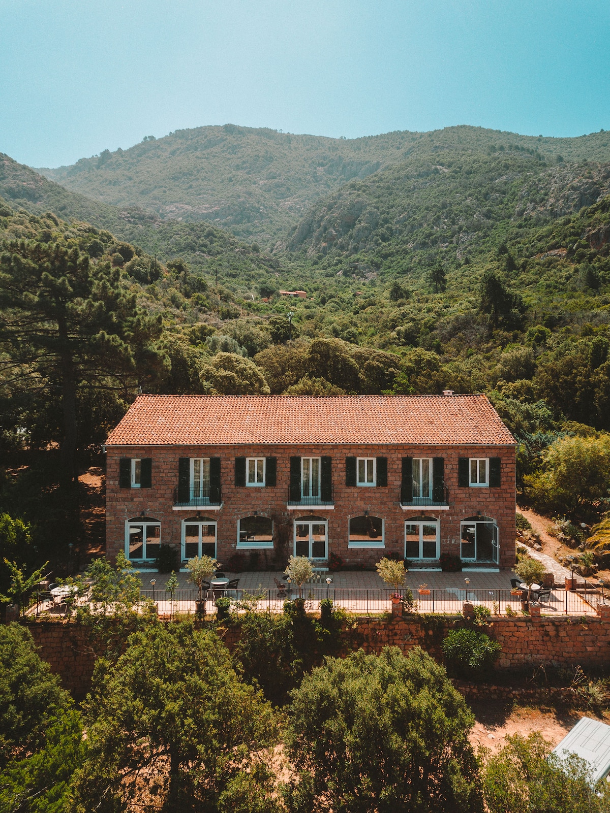 Al cor del Golf de Porto (Piana-Scandola), classificat per la Unesco, a 400 m de la platja de Bussaglia, en un entorn verd de 3,5 hectàrees, us convidem a descobrir l'Aiglon, una encantadora residència d'hotel construïda el 1960 i que acabem de renovar. 6 apartaments amb encant amb un esperit de "vacances", barrejant accents cors i ciclàdics. El vestíbul d'inspiració vintage t'acull per passar un moment de relax, com ara l'entorn de l'allotjament o la piscina situada al cor de les vinyes velles.