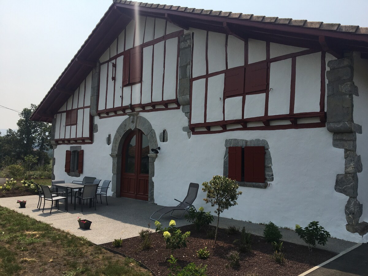 Entre mar i muntanya, a la vora d'una fusta, aquest edifici del segle XVII ha estat totalment reformat respectant els materials i l'hàbitat típic basc. Amb una vista bucòlica d'un camp ondulat, us oferirà pau i serenitat. Tothom trobarà la seva intimitat en els seus còmodes volums. La Costa Basca amb les seves platges i camps de golf a 25 minuts i els camins a peu de la casa. Rànquing turístic moblat de 4 estrelles. Estarem encantats de tenir-vos allà.