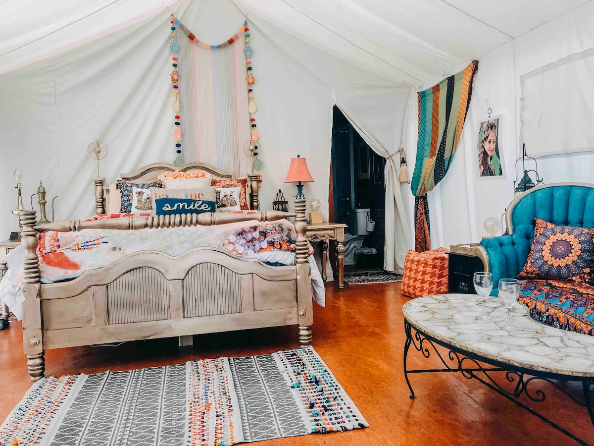 Escapa't a la bellesa serena d'Idaho, en una petita granja. Aquesta espaiosa tenda combina les comoditats de la llar amb l'esplendor de la natura, amb un acollidor llit «king size», llençols suaus i una decoració rústica. Submergeix-te en la vida de la granja amb activitats com donar menjar als animals, explorar els camins dels voltants o simplement relaxar-te sota el cel estrellat.