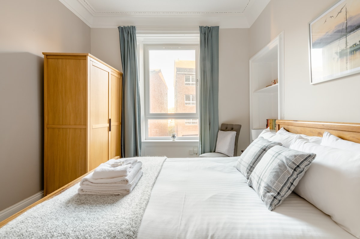 Solejat pis en planta baixa que ofereix una gran base per a explorar les atraccions turístiques i locals d'Edimburg per igual. Cafè/te gratuït. Fàcil accés al centre de la ciutat (1 autobús curt/curt recorregut/bonic passeig a peu per un camí bici), així com a poca distància de The Shore, on trobaràs bones vibracions, vistes i menjar. Psst... tot i ser totalment hip, cool i de moda en l'allotjament i la ubicació, també som aptes per a nadons.