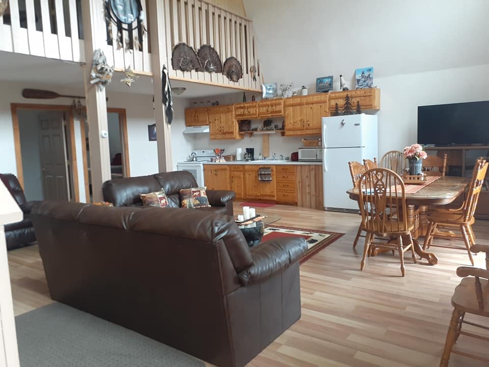 Et donem la benvinguda a casa nostra: on hem trobat pau i relaxació durant més de 20 anys. Big R, originari d'Alemanya, es va enamorar de les terres obertes i els turons ondulats de Wisconsin, i es va convertir en ciutadà dels anys 80. Va conèixer en Curly, una noia de ciutat de Chicago, que va portar una petita ciutat a la seva vida rural. Ells gaudeixen pujant búfals i passant dies més càlids al seu porxo gaudint de l'aire lliure i d'unes vistes precioses (sense mosquits!). Ara volen compartir amb tu la seva llar idíl·lica i tranquil·la. Baixa per un carrer sense sortida i puja a una caseta rústica plena d'equipaments i serveis d'alta tecnologia i acollidors. Tenim alguna cosa per a tothom amb una llar de foc de gas, televisor (amb plat, Cinemax, HBO i un sistema de so Bluetooth), jocs de taula i una cuina completa. Pren-te una copa a l'aire lliure per banyar-te a la banyera d'hidromassatge o asseu-te al voltant de la foguera. Quan acabi el dia, t'adormiràs immediatament al llit d'espuma viscoelàstica, ja sigui a l'loft o al dormitori, i et despertaràs amb una sortida de sol preciosa amb vistes a la teva petita escapada.