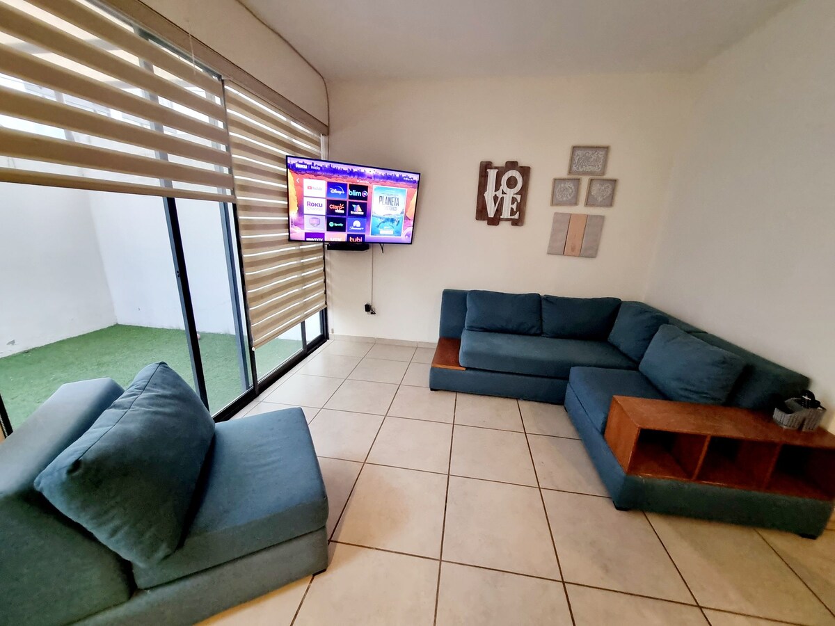 Preciosa casa als afores de Guadalajara, 3 banys complets i mig bany, amb un llit king size, un llit doble i 2 llits individuals, la casa té un jardí al terrat ideal per rostir carn, piscina i gimnàs d'ús comú perquè forma part d'un fraccionament.