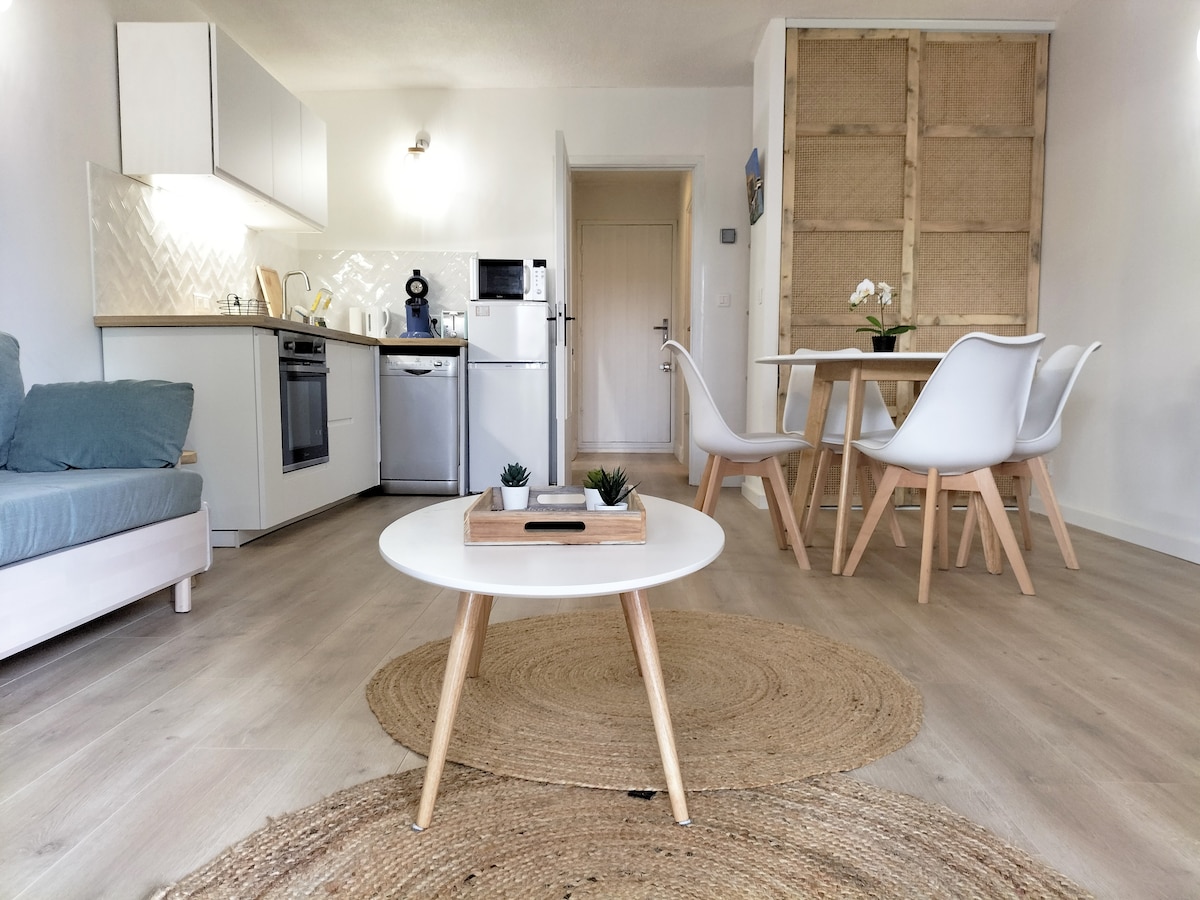 T2- Cocon a 5 minuts de la platja – Tranquil·litat i comoditat a Boulouris Et donem la benvinguda a aquest bonic caputó reformat de 35 m², amb una ubicació ideal a Boulouris, en un entorn verd i molt tranquil. Aquí, tot s'uneix per passar unes vacances relaxants entre el mar, la natura i la comoditat moderna.