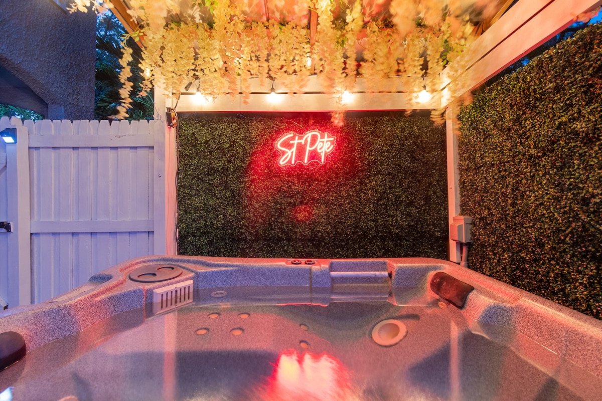Viu l'essència de Florida amb estil: sol infinit, brises càlides i relaxació total. Gaudeix del nostre nou espai termal per a sis persones, amb l'única banyera d'hidromassatge personalitzada, bar i pèrgola de la zona. Envoltat d'un exuberant paisatge tropical i tancat per una tanca de dos metres i mig de privacitat, aquest oasi privat ofereix l'escapada perfecta. Quan vulguis explorar la zona, gaudeix de camps de golf de categoria mundial, fonts cristal·lines i comunitats de platja encantadores a poca distància en cotxe.