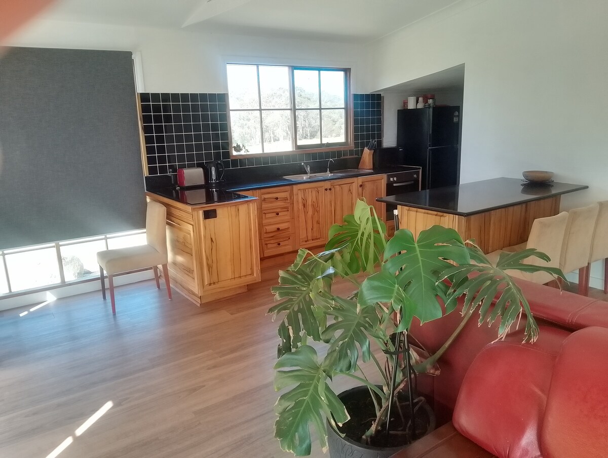 Complimentary champagne! This architecturally designed Barndominium is newly built and one-of-a-kind in the North East of Tasmania. With hydronic floor heating, air conditioning and super-fast wifi, this space is perfect for a romantic getaway or a large group. Tastefully decorated to match the unique design, the mix of old and new will excite! With floor to ceiling windows on the eastern aspect the view down the valley with the morning sun is stunning. Complete with sitting area mezzanine.