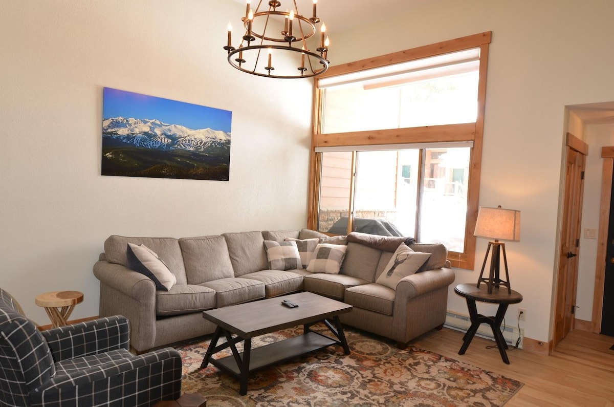 Dorm tot el grup en aquesta casa unifamiliar de 5 dormitoris i 3,5 banys a Peak 9. A una illa de l'esquí i a 3 blocs del carrer principal. 2600 peus quadrats de més de 4 nivells ofereixen espai i privacitat, a més de l'ambient d'estar entre els pins imponents. Altres equipaments i serveis inclouen una cuina totalment equipada i actualitzada, zona de menjador amb taula gran, sala d'estar amb llar de foc de gas, banyera d'hidromassatge privada, rentadora/assecadora, 1 garatge, tres cobertes i accés a la piscina. Accés fàcil per fer senderisme. Situat a l'altra banda de Snowflake Run/Lift.