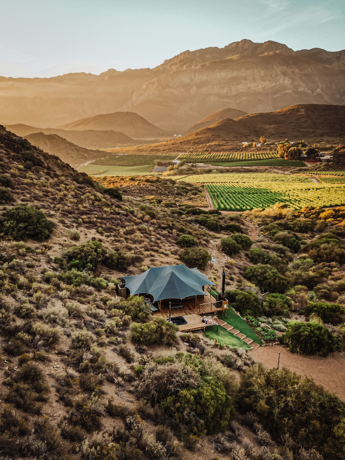 Gaudeix de l'entorn serè d'aquesta escapada romàntica, enclavada a la natura, a només 7 km de l'encantadora ciutat de Montagu, al Little Karoo. La tenda ofereix una experiència fora de la xarxa, però encara tindràs recepció mòbil i totes les comoditats del luxe. Ofereix molt d'espai per submergir-te completament en la natura. La tenda està equipada amb endolls elèctrics i una gran varietat d'electrodomèstics petits: bullidor, placa d'inducció, microones, torradora i una unitat d'aire condicionat amb configuració de calor i fred.