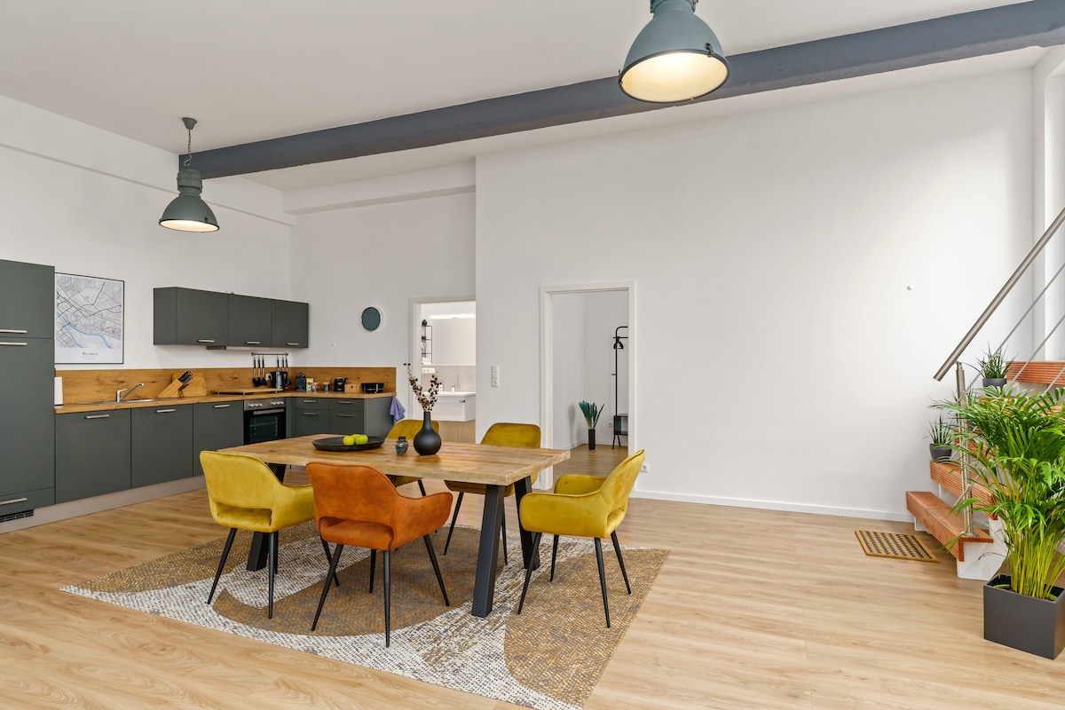 Dieses moderne Loft-Appartement punktet mit einer großzügigen Aufteilung, stilvollen Design-Möbeln und einer vollausgestatteten Küche. ☆ Kontaktloser 24h-Check-in ☆ Kostenlose Hotelbettwäsche und Handtücher ☆ Kostenlose Pflegeprodukte von PRIJA ☆ Nespresso-Kaffeemaschine ☆ Smart TV ☆ Infrarot-Sauna