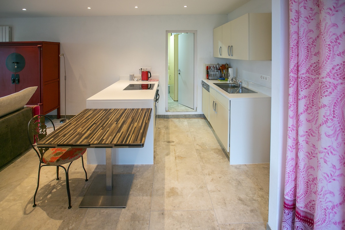 Bon lloc amb bany, cuina i accés independent a la casa de camp. Envoltada de vegetació, a 10 minuts del centre de la ciutat i a només 3 minuts a peu de la Universitat i del Centre de Cosmètica. Pau i tranquil·litat. Ideal per a estades curtes i llargues. Aparcament privat.