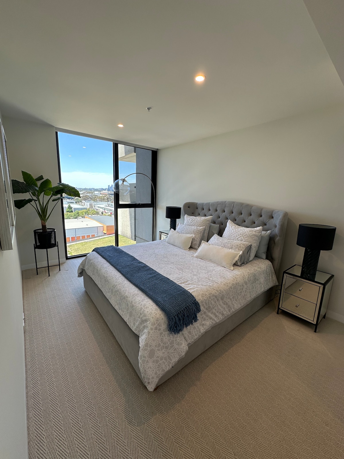 Modern hotel–feel apartment with city views.