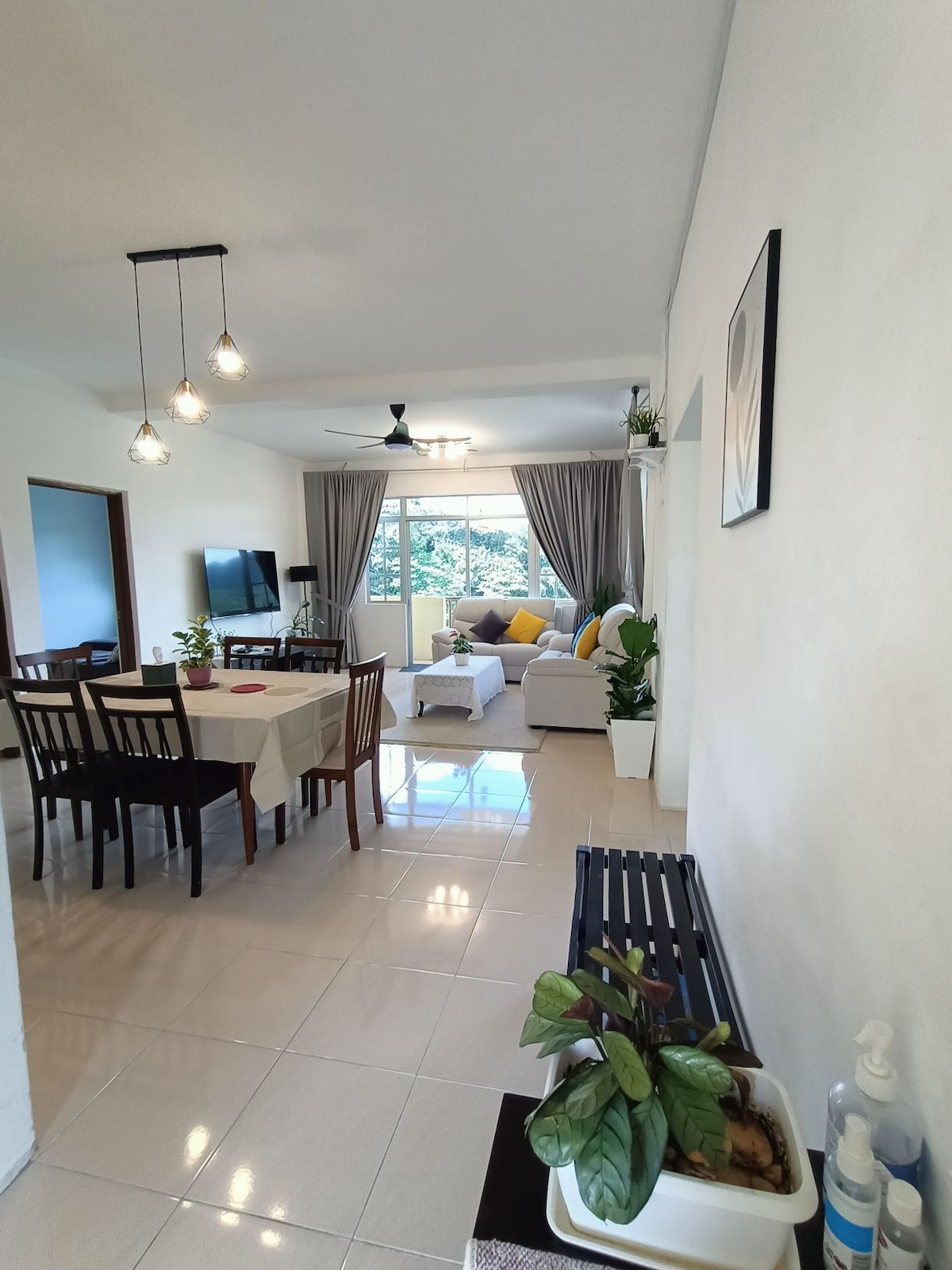 Vistes panoràmiques des de l'última planta al cor de Brinchang, Emeralds Ave. Darrere del Centre Comercial Centrum. 10 persones. 4 llits dobles + 2 individuals + 3 banys + 3 aparcaments a prop de l'ascensor. Apte per a gent gran i nens. Purificador d'aigua Coway. A poca distància de més de 100 restaurants, cafès, Burger King, KFC, pubs, botigues i un gran supermercat. Purificador d'aigua, televisor intel·ligent de 65 polzades, Unify, Netflix i TV Box, taula de Mahjong, taula de Carom i llavors. Per a 20 persones, pots reservar unitat de connexió. Enllaç EA923 https://www.airbnb.com/h/josplaceemerald