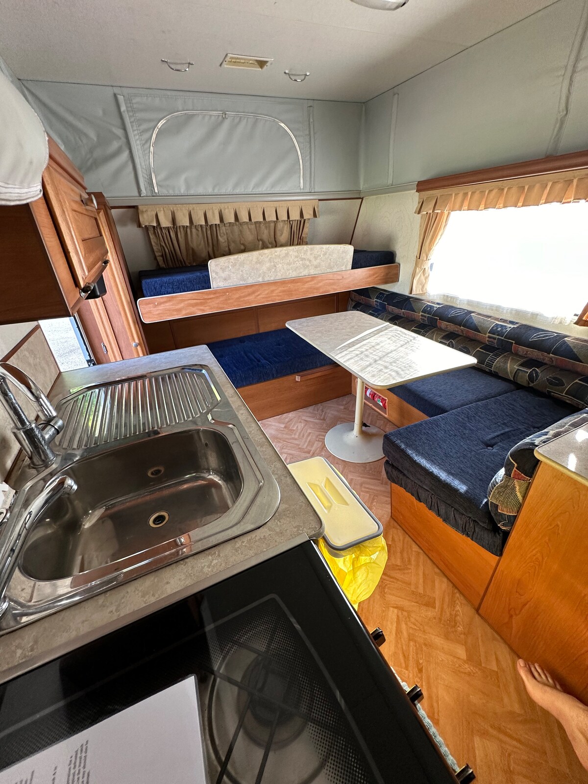 La meva furgoneta té dos llits individuals i un llit còmode de matrimoni. Capacitat per a 4 persones sense necessitat de convertir-ho tot el temps. Aire condicionat, punts d'energia, nevera amb congelador petit (de gas o 240v), Té un tendal perquè puguis seure a sota i se subministren cadires i taules d'acampada. Cuina equipada amb tot el necessari. Té un microones de 240v i una cuina de gas. Cafetera Nespresso, cà psules BYO. Pots configurar port-a-loo a la tenda de campanya, però has de buidar-lo. En cas contrari, s'aplicarà una tarifa de 150 $. TINGUES EN COMPTE QUE LES TARIFES DEL CAMPAMENT SÓN RESPONSABILITAT TEVA. JO REMOLCARÉ I CONFIGURARÉ