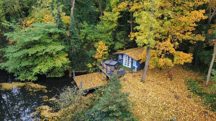 Bluebell Pod is our couples pod, with a double bed and pull out sofa, dining table, living space and a romantic outdoor bathtub with fantastic lake views and views of the farm. Our self catering pods have a kitchenette with induction hobs and a microwave. We also have outdoor seating and a private BBQ for an al-fresco dining experience. Each pod has luxurious décor selected with extra comfort in mind. Near Thornbury, Bristol where you will find lots shops and restaurants.
