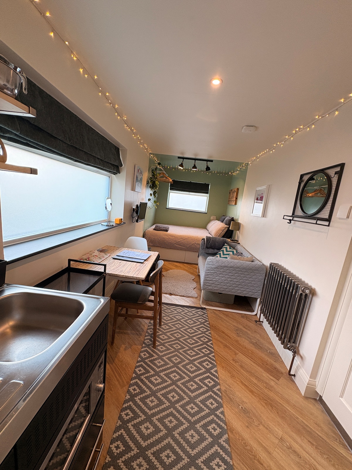 Un espai encantador molt lleuger i airejat: un matalàs doble estàndard Simba nou que crec que és realment còmode. Aquest és un lloc tranquil però molt a prop del centre comercial, The Wave i el zoo i a només 6 milles de la ciutat: una nit de son perfecta en un matalàs SIMBA i amb tovalloles blanques i suaus i tot el que necessites per a una nit fora de casa. També tenim un televisor nou amb iplayer i Netflix, rentadora nova i una paella antiadherent decent.