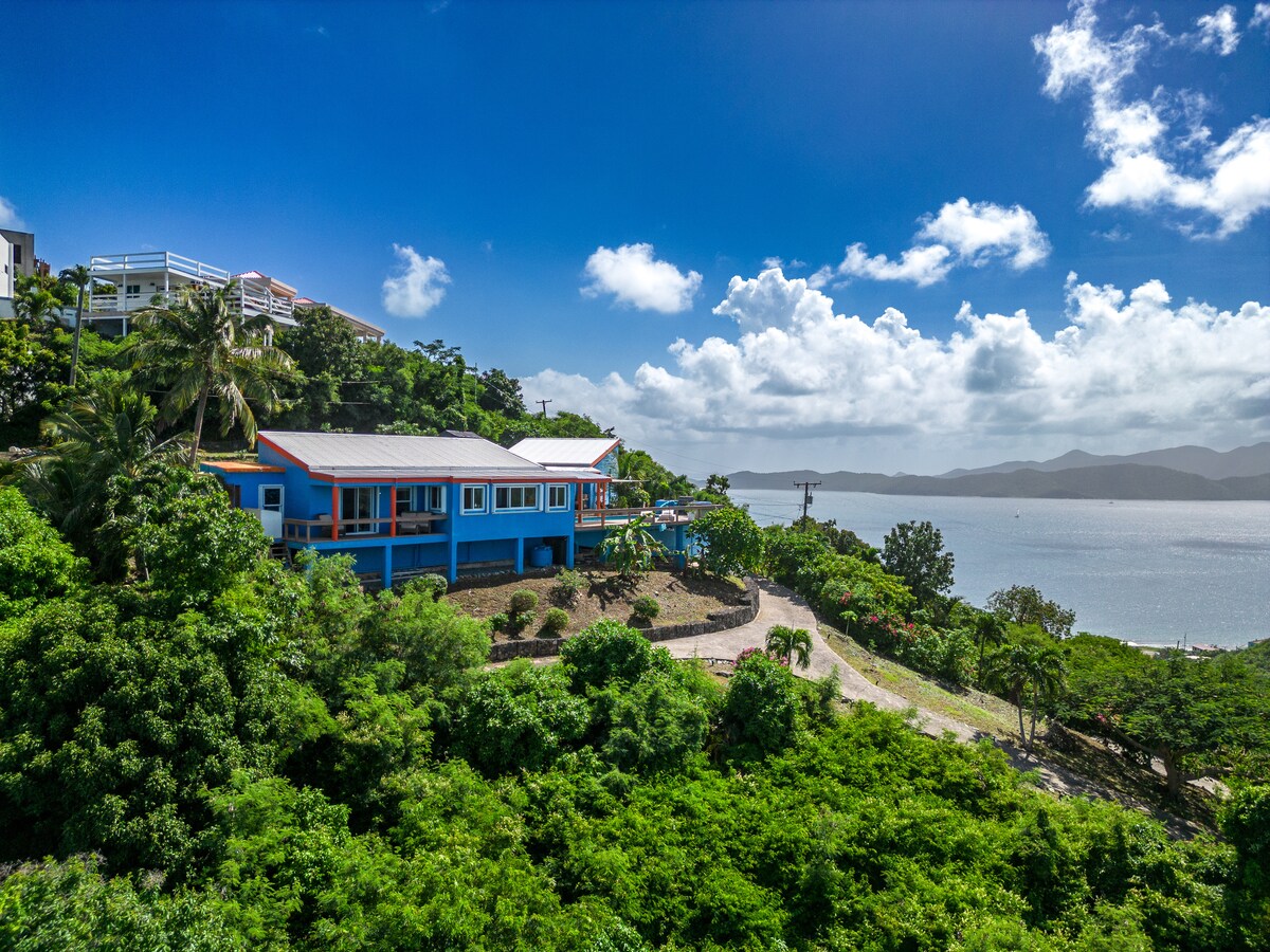 A 3 minuts en cotxe de Nanny Cay Marina, aquesta propietat es troba a 350' amb la vista més increïble de 180 graus del famós canal Sir Francis Drake (amb no menys de 13 illes per mirar).) El nostre allotjament té un disseny molt obert i espaiós, amb una terrassa coberta de 70'i una decoració i un ambient de "vida costanera" lluminosos i colorits a tot arreu.