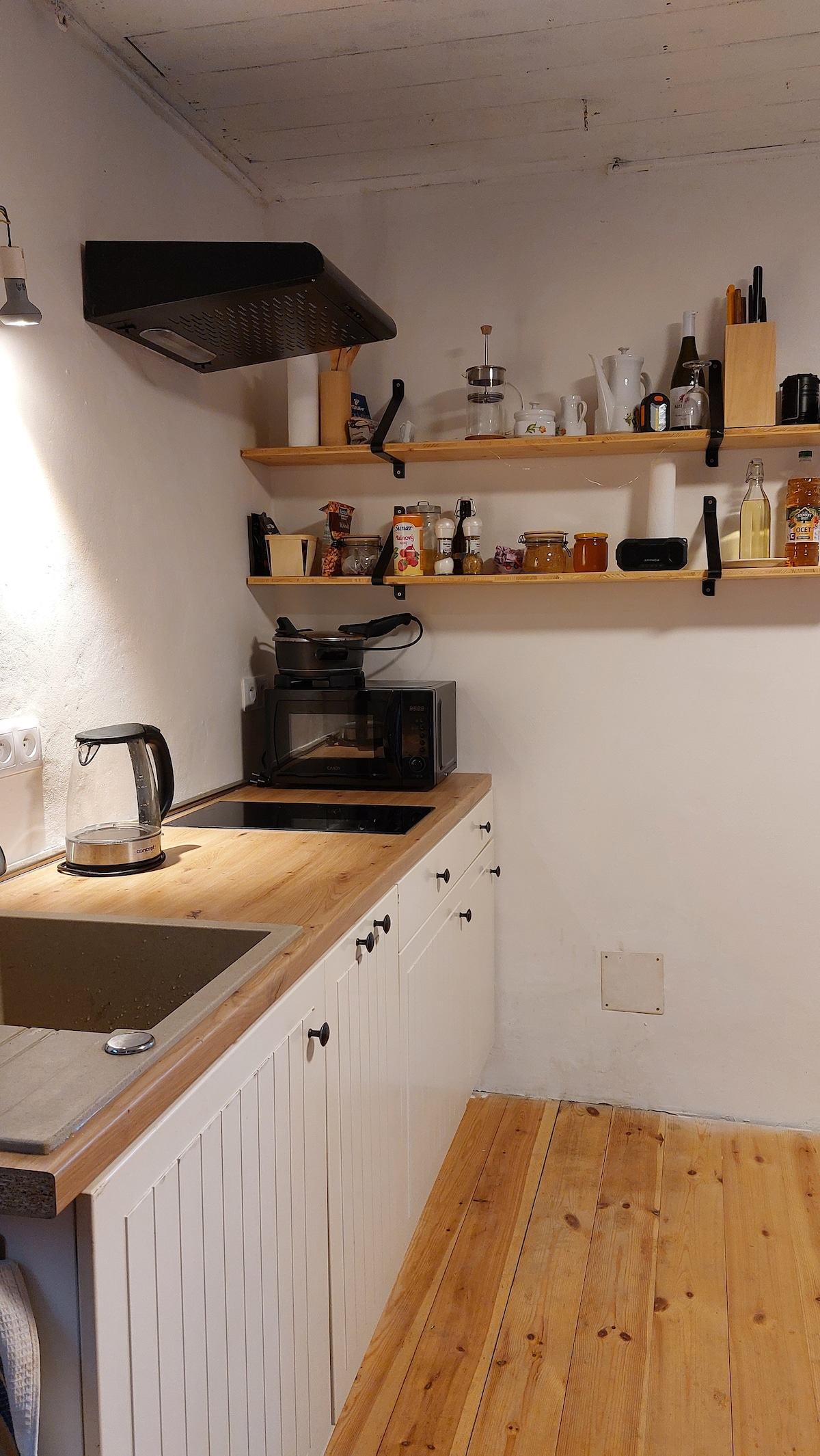 Una casa rural amb una vista preciosa del nivell de l'aigua al Karst de Moràvia. Consta d'una habitació (37m2), un racó amb banyera i un vàter. Hi ha una cuina totalment equipada. La calefacció es gestiona mitjançant una llar de foc i un infrapan. Hi ha un llit doble, un llit individual i un sofà llit per a dues persones. El jardí és gran de 777 m2, només té un veí i tot està tancat. Hi ha una canoa per a dues persones. Aquest anunci és per a aquells que volen estar a l'aire lliure i entendre què implica. Estimats hostes, no busqueu el luxe dels vostres apartaments amb nosaltres.