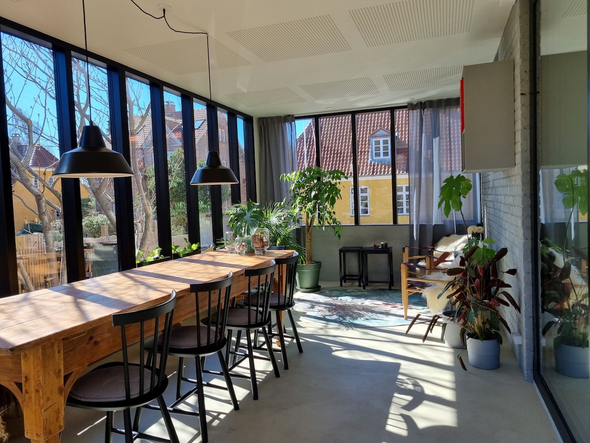L'epítome de l'HYGGE! Unes vibres escandinaves de luxe al cor de la ciutat. A un pas de Tívoli i l'Ajuntament. Aquest pis anunciat i restaurat amb estil disposa d'un llit extragrande còmode, bany amb dutxa de pluja/cuina moderna/sala d'estar acollidora i armari amb vestidor. Els nostres hostes ens diuen que els encanta aquest apartament amb jardí, però el pati privat tranquil és el que el fa únic. Vivim a dalt en la nostra joia oculta de 1730 situada per Strøget en el Marais de CPH:"Pisserenden" IG:@historichouseandgarden