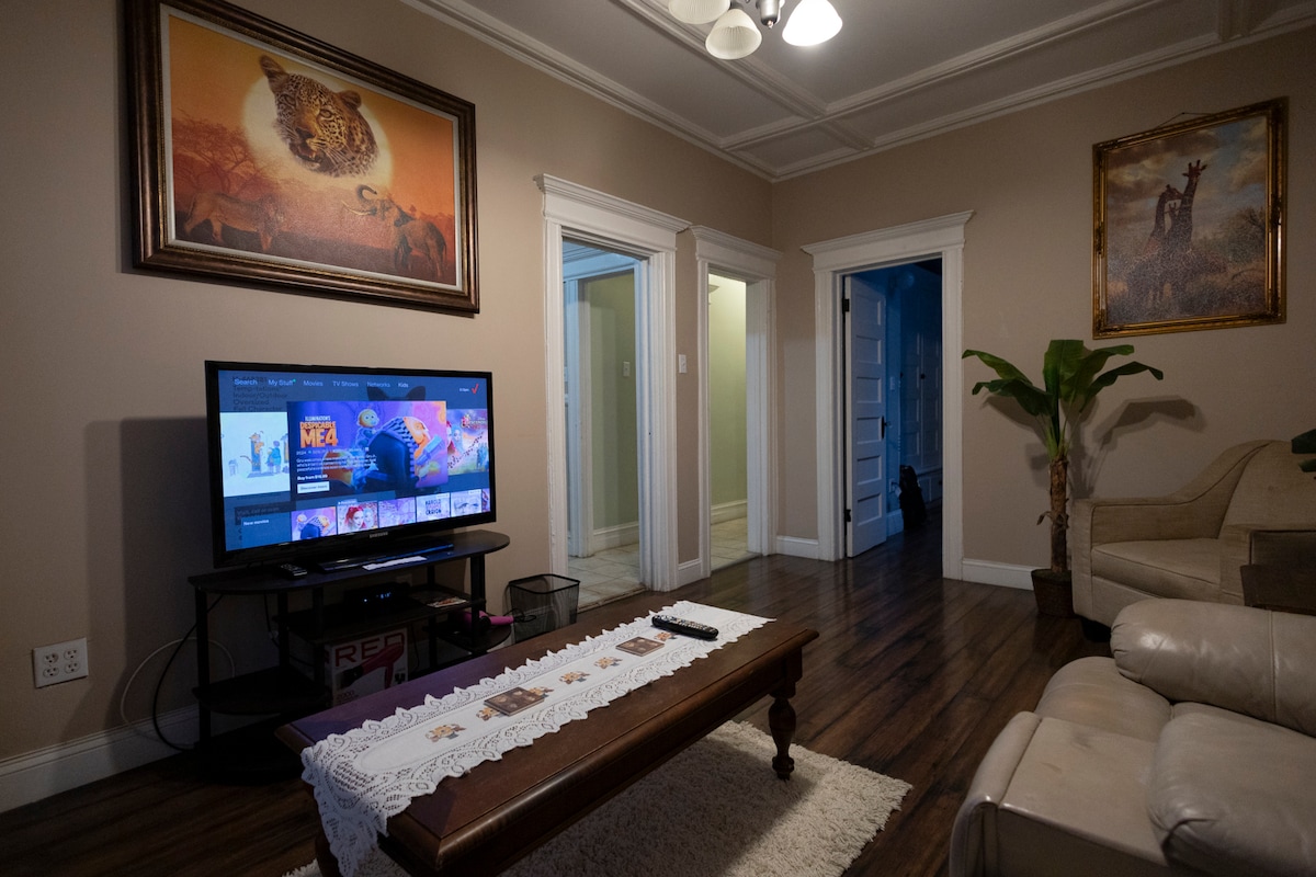 Et donem la benvinguda al teu tranquil refugi de Brooklyn! Aquest apartament elegant té característiques com ara rentadora i assecadora, fogons de gas, nevera vintage i un bany amb claraboia. Decorat amb cura amb art local i d'Àfrica Occidental, ofereix una escapada tranquil·la al llarg de Eastern Parkway, a només uns passos del tren 3 a Nostrand Ave. Gaudeix d'un fàcil accés a bars, restaurants, oci nocturn i cultura. Manhattan és a només 20-25 minuts. Una estada neta i còmoda a Crown Heights!
