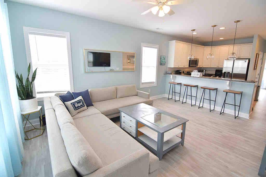 A quatre passes de la sorra, un munt d'espai. Aquesta casa adossada de tres habitacions i tres banys té capacitat per a vuit persones i es troba a només 2 minuts a peu de Carolina Beach. Per què t'encantarà? - Terrassa privada al terrat per a les postes de sol i observar les estrelles - 3 places d'aparcament fora del carrer, sense parquímetres de platja - Cuina totalment equipada, a més de Wi-Fi d'alta velocitat i televisió amb streaming - Cadires de platja, joguines, nevera i carro de cortesia - Reserva les dates ara abans que s'esgotin!
