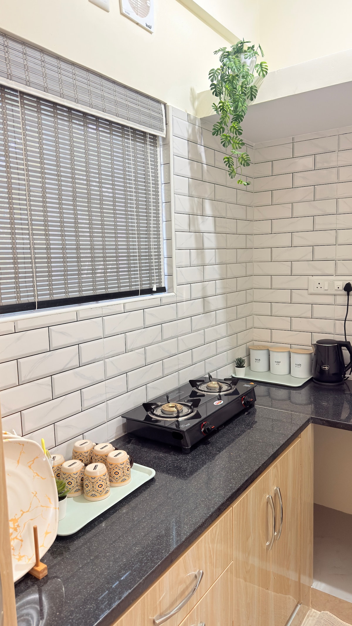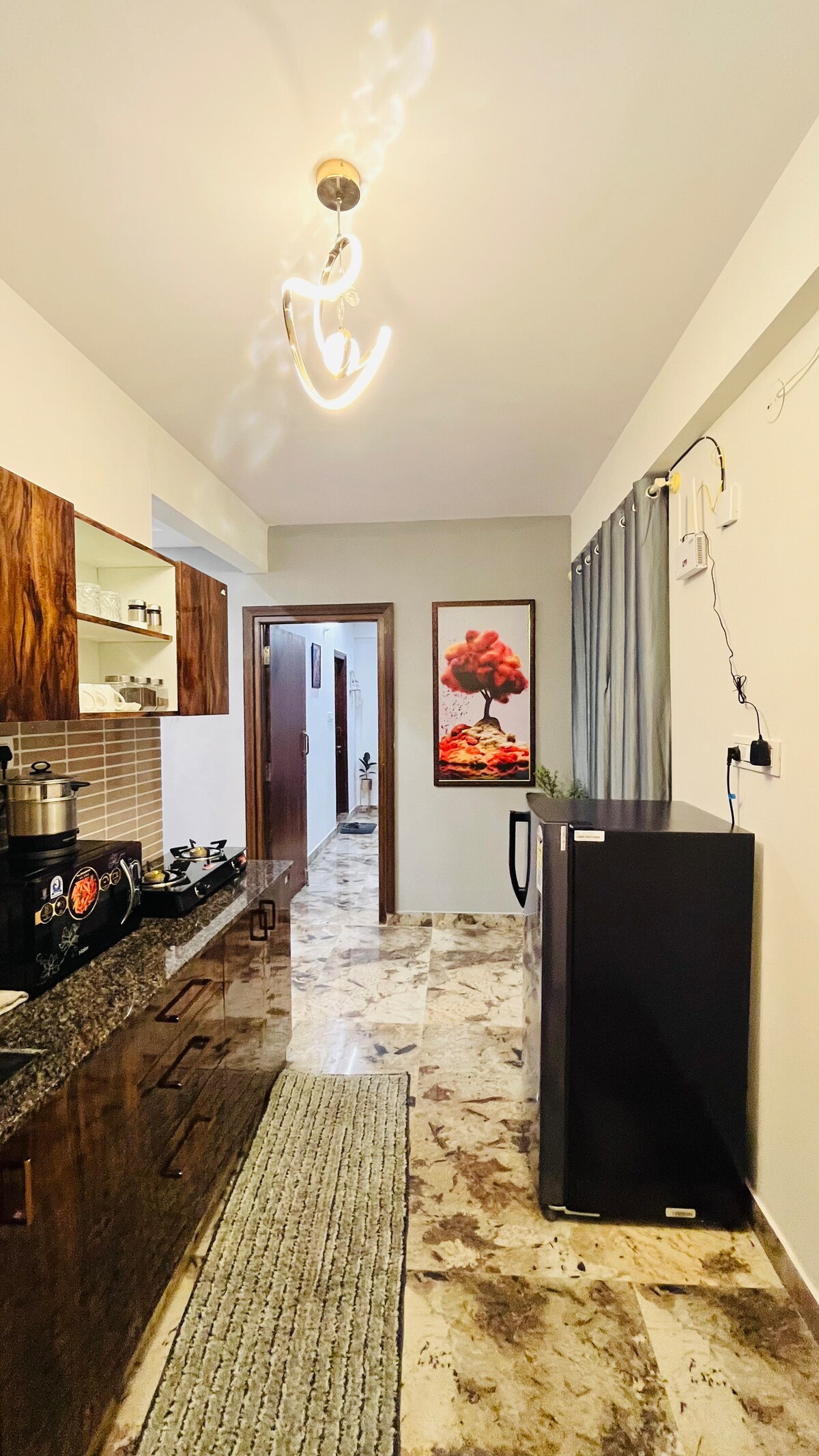 Et donem la benvinguda al nostre espaiós pis 1-BHK recentment renovat, ideal per a parelles i famílies que busquen comoditat i comoditat. El dormitori disposa d'un llit «queen size» i un matalàs ortopèdic suau per gaudir d'una nit de descans. Relaxa't a la gran sala d'estar amb un televisor intel·ligent de 43 polzades, wifi ràpid i un espai de treball. Inclou un bany molt net amb elements bàsics. La cuina totalment equipada inclou ingredients bàsics, electrodomèstics d'alta qualitat i vaixella per a les teves aventures culinàries.