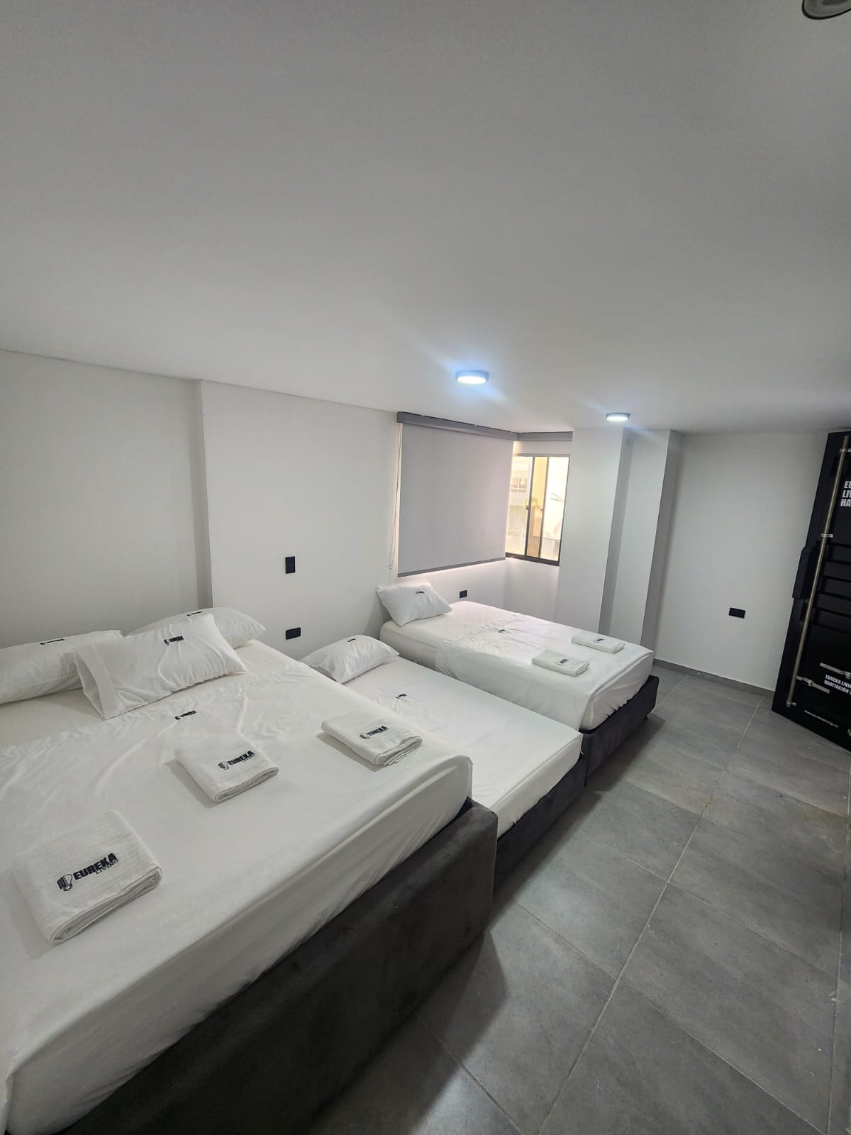 Preciós pis nou. 10è pis amb increïbles vistes al capvespre. Ubicació cèntrica. Zona residencial i segura al costat del centre comercial Cacique i el Centre de convencions Neomundo, fàcil accés a la Carrera 33,Cabecera,Girón i Floridablanca. 2 dormitoris, 2 balcons, hamaca, 2 banys, 2 llits, un llit auxiliar i un sofà llit. Excel·lent il·luminació i ventilació, WIFI de 300 mbps, 2 televisors amb accés a DirecTvGO, Netflix, Amazon i HBO. Planta baixa del complex amb minimarket, fleca, farmàcia, entre d'altres.
