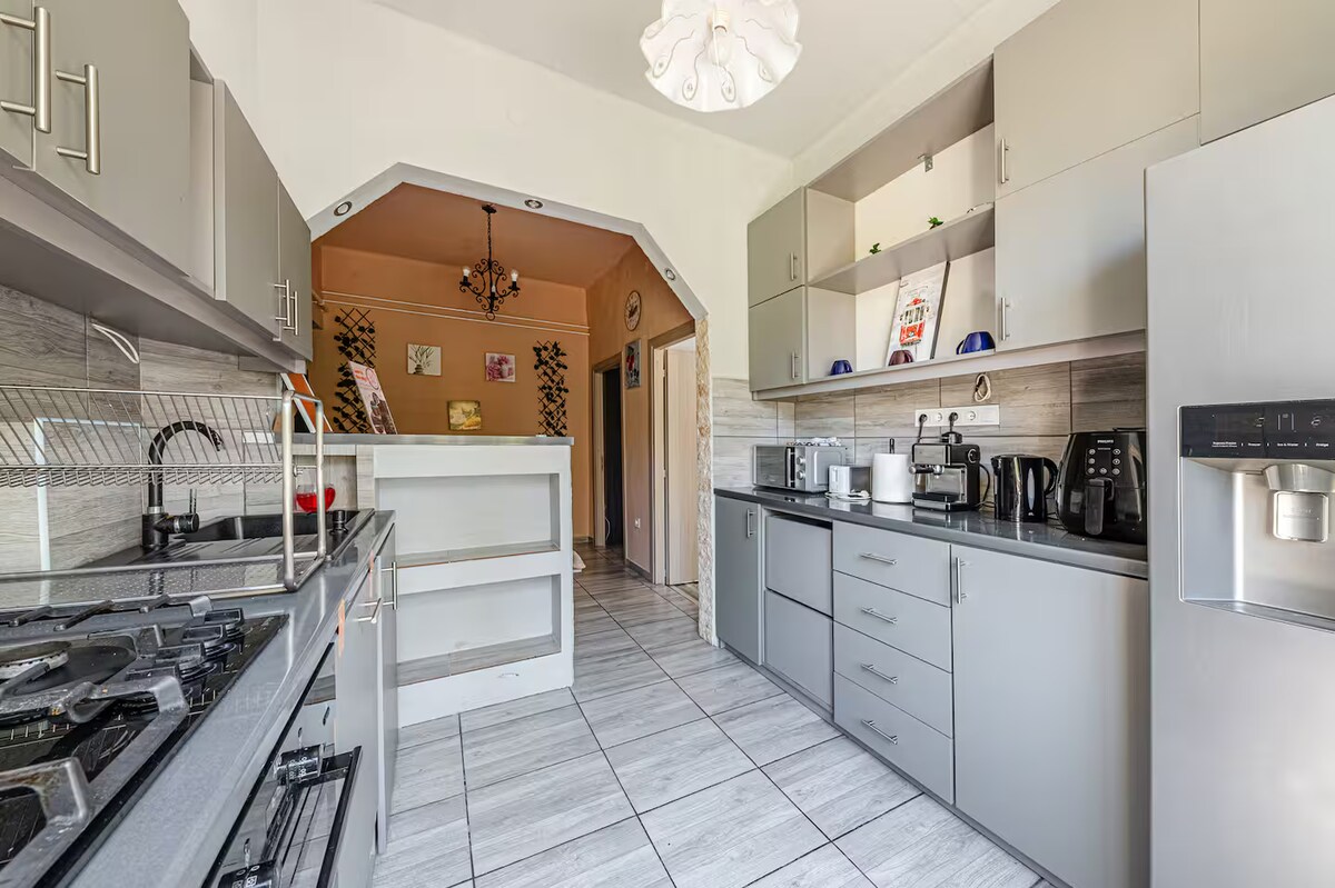 La ubicació és l'epicentre de Budapest, a 20 metres del pont de les cadenes. La casa anunciada de 150 anys va ser dissenyada pel mateix arquitecte que el Parlament i té una bellesa decadent i antiga, mentre que el pis és molt senzill i bàsic, una mica industrial, però se sent casa immediatament. El pis té vista a un pati interior verd entre cases. Aire condicionat de tipus split a partir del 5 de juny del 2025.