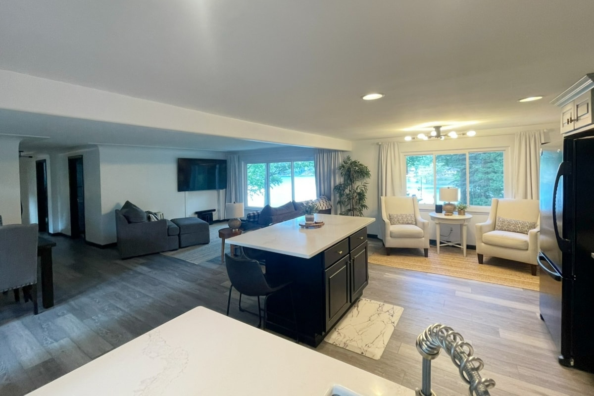 Porta tota la colla a aquest ranxo modern i divertit davant del llac, en 2 hectàrees privades del llac Budd, on es poden fer tots els esports! Amb un estil de vida obert i espai per relaxar-se o jugar, és perfecte per a famílies i amics. Explora les aventures d'activitats interiors i exteriors d'Harrison, com restaurants, bars, botigues, piragüisme, golf, pesca i pesca al gel, tirolina, ràfting de riu, caça, carreres de costat, esquí, motos de neu i molt més! Sopar, compra i relaxa't a pocs minuts. La teva escapada al nord comença aquí!