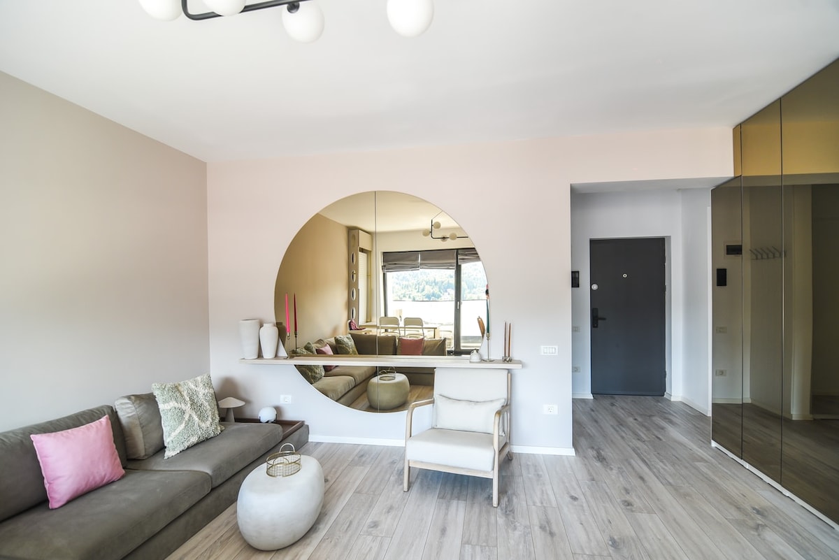 This unique apartment interior design, full of positive vibration, is the brainchild of my favorite architect with whom I live together since 2018. What makes this place so striking is the blend of artistic Romanian influences and natural materials that create layers of intrigue and beauty, designed to engage the senses. Located in a quiet residential area, close to everything you may need, makes it the perfect choice for exploring this beautiful and amazing mountain town.