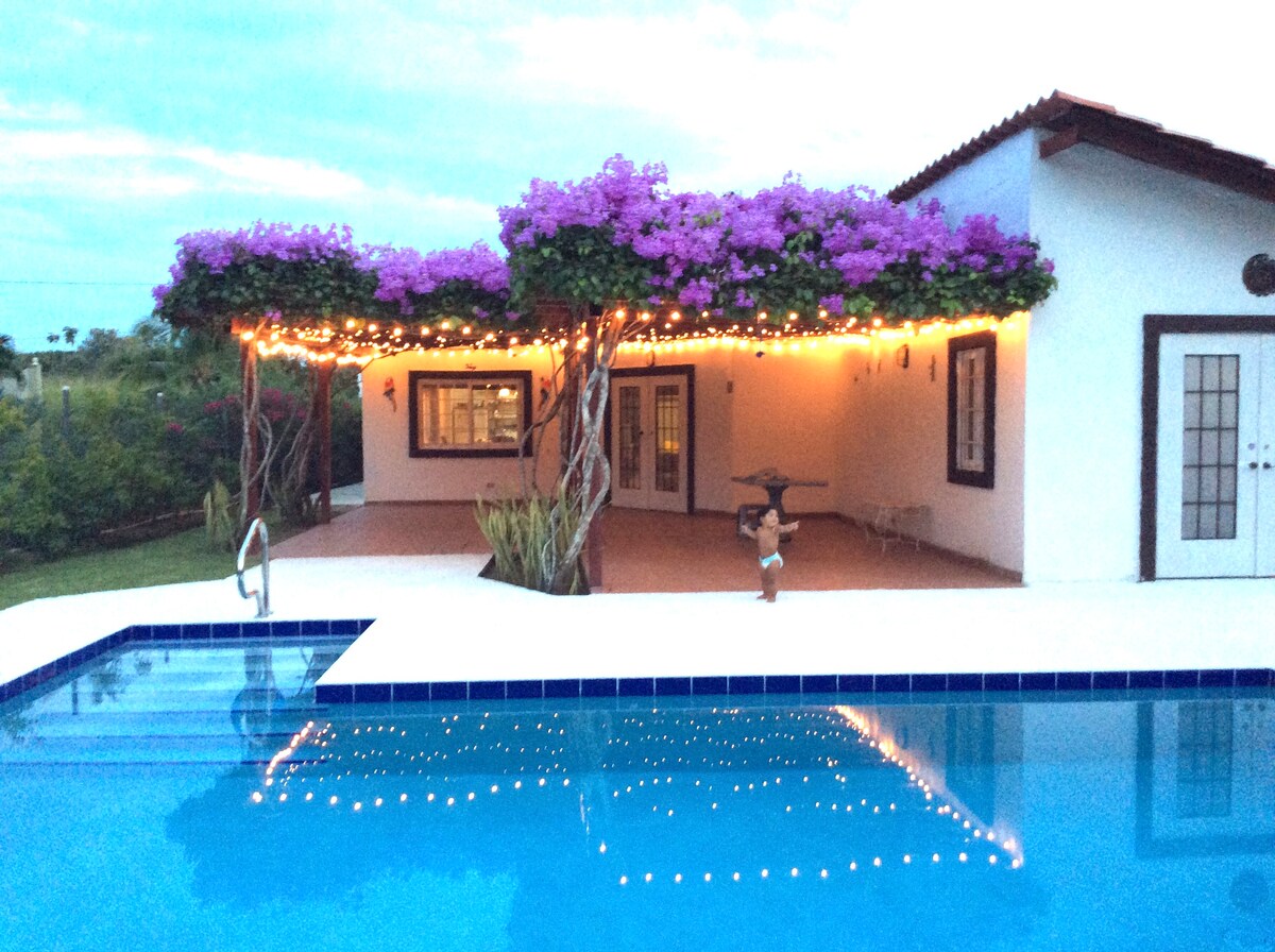 Santa Fe de Lajas en Chame, Provincia de Panamá oeste una casa vacacional, que te permite conectarte con la naturaleza y pasar ratos de esparcimiento solo o en familia. La casa tiene una capacidad para 10 personas. Cuenta con tres habitaciones, cada una con su baño privado. Cocina, sala, comedor, una habitacion para trabajar, piscina, terraza techadas, jardín al aire libre y área de BBQ. Servicios de Wifi y televisión. Accesibilidad a las playas del área, centros comerciales, montañas etc.