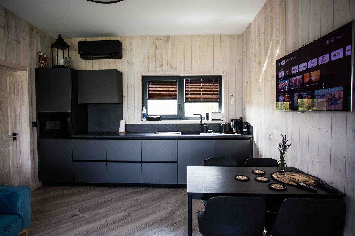 A design-lover’s retreat near Riga. This stylish cabin is next to our plant nursery, with a cozy café just steps away. Surrounded by trees and flowers, it’s the perfect place to disappear for a while. We have robes, slippers, toothbrushes, towels, hair dryer, hair straightener, shampoo, conditioner! Also a free bottle of water, spices, coffee, tea, olive oil, hot chocolate etc! wood-fired hot tub, 60€/per booking (request latest 1 day in advance) For more info: oranzerija.kabriolets