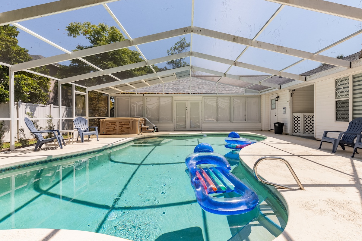 Et donem la benvinguda a la nostra casa bonica, elegant i acollidora amb mobles i llits renovats. Una ubicació fantàstica a Palm Coast, a prop del famós centre històric de St. Augustine i de Speedway Daytona Beach. Aquesta joia amagada està a només 15 minuts de l'Oceà Atlàntic (Flagler Beach), a 7 minuts de la I-95. La nostra moderna casa de 3 dormitoris i 2 banys té un gran pati amb mosquitera i una piscina CLIMATITZADA. Aquest lloc és perfecte per a una escapada amb la família i/o amics per a un ambient relaxant i una mica de diversió a la piscina o a la platja.