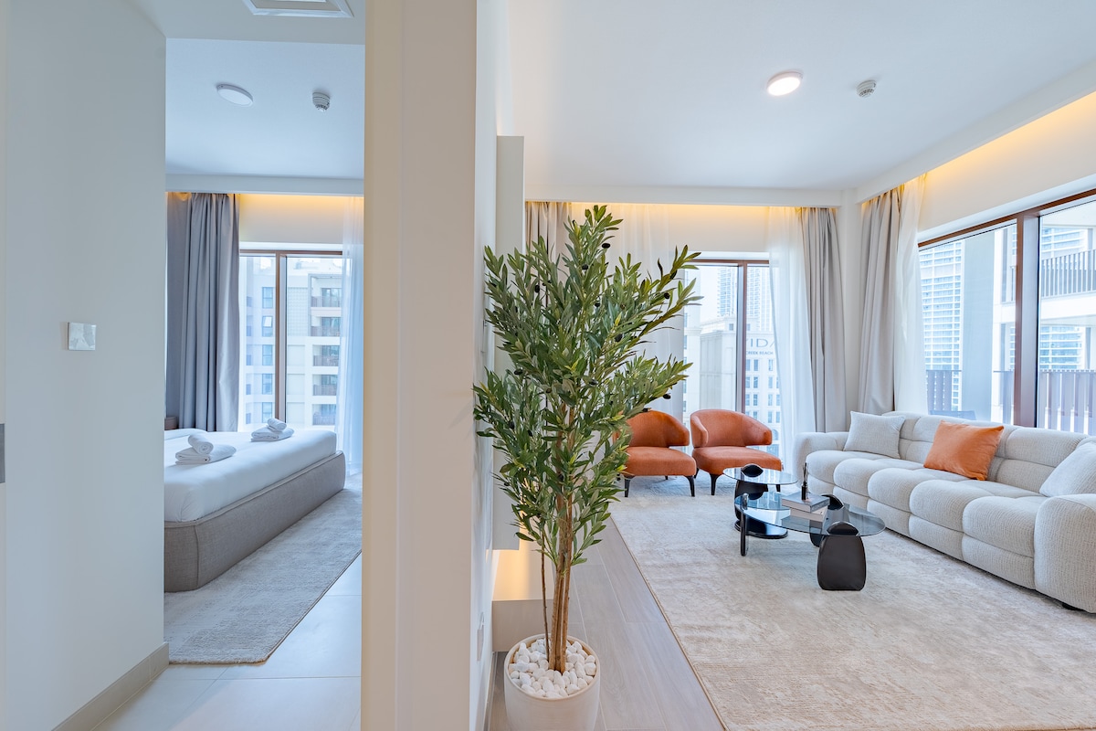 Gaudeix del luxe al nostre exclusiu apartament amb tots els serveis situat dins d'un hotel de 5 estrelles. Gaudeix de les impressionants vistes de l'emblemàtic Burj Khalifa des de la piscina infinita més gran de la planta 64, mantén el teu règim de fitness al nostre gimnàs d'última generació amb vistes panoràmiques de la ciutat i submergeix-te en el nostre elegant apartament, complementat amb una impressionant vista al centre de la ciutat i al mar des del balcó de la planta 33 i una cuina totalment equipada.