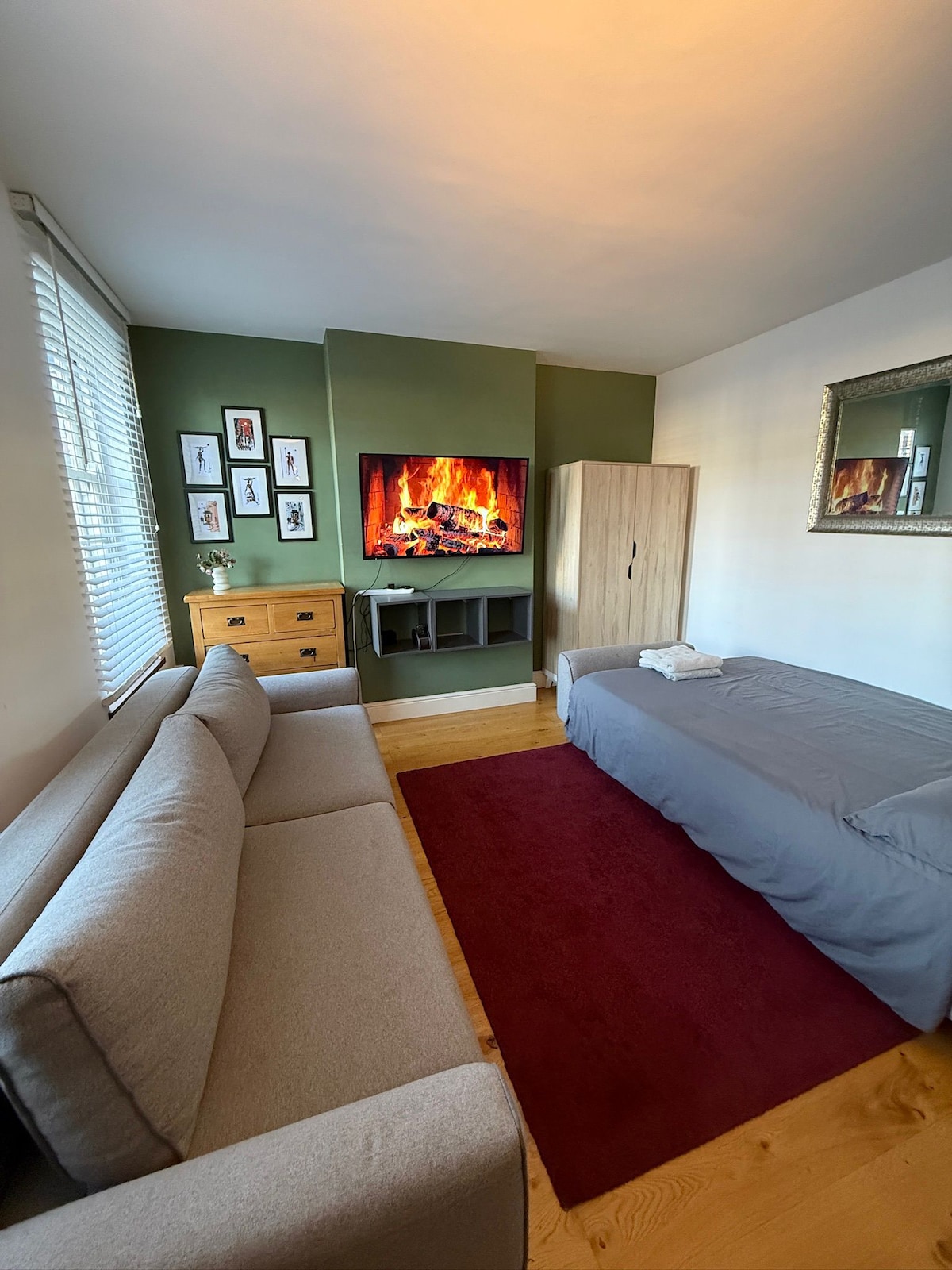 Un estudi bonic i acollidor a només 2 minuts a peu de l'estació d'Edgware, de les parades d'autobús i del centre comercial Broadwalk. Envoltat de grans restaurants i una botiga de queviures just a la planta baixa. Totalment equipat amb cuina, televisor, un llit còmode i un sofà llit per a un nen. L'estada perfecta per a les festes. Malauradament, no s'admeten animals de companyia.
