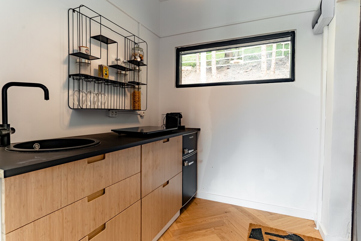 A la casa triangular d'en David trobaràs tot el que necessites per gaudir d'una estada còmoda i sense preocupacions. Situada als afores del poble, la caseta ofereix l'avantatge d'estar a només 5 minuts en cotxe de botigues i restaurants, però prou lluny per gaudir de pau i privacitat. Et dono la benvinguda a la vora del bosc, en un racó tranquil on podràs relaxar-te completament i gaudir de la natura.