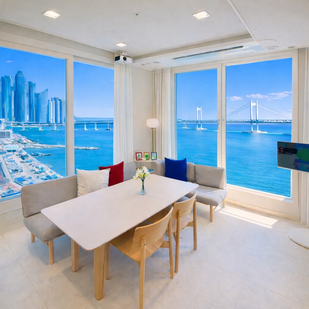 🌍 Airbnb Selected Global Top 1% 🔥🔥 초고층 광안리 파노라마 오션뷰 프리미엄 합법숙소✨ 🌈 신축+청결💯+친절🫶 숙소 문을 열자마자 모두들 탄성을🫢 가장 사랑받는 인기 1등, - 만족도 1등 숙소🥇 ✨️6인 침대 + 2인 푹신한 토퍼 이불 / 7인 가능 우정여행, 가족여행에 최적화된 5점 만점 숙소♥️ 🏆 수많은 후기에서 증명된 광안리 대표 숙소, - 만족도 최상위 클래스💗 🙇🏻♀️ 호스트가 직접 깨끗하게 관리하며 모든 편의 봐드려요🫶 후기 만점! 믿고 예약하세요🤍 ✍🏻 5성호텔급 청결 룸컨디션, 에머니티 제공 🏷️ 불꽃축제, 일출을 숙소 거실 및 침실에서 관람 ✍🏻 핫플 🔥 밀락더마켓 바로 옆 도보 30초 🏷️ 건물 1,2층 카페, 편의점, 포토샵, 맛집 입점 ✍🏻광안리 해수욕장, 회센터 바로 옆 🏷️ 넷플릭스, 유튜브 등 초대형 빔 설치 ✍🏻지하 3층까지 무료주차 (타워X)