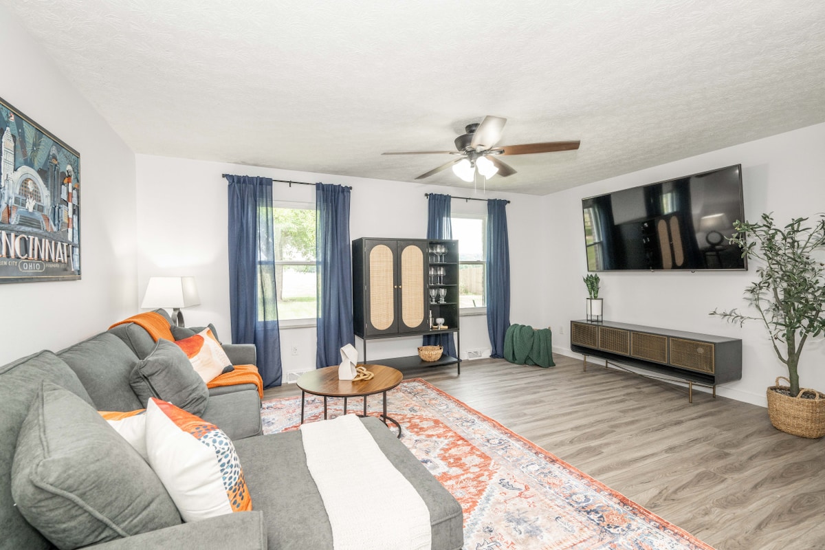 Acollidora i espaiosa, eficiència de casa rural. Cuina oberta/sala d'estar. A 15 minuts del nou complex esportiu Spooky Nook i a pocs minuts de Miami U! Gaudeix relaxant-te sota el cenador o gaudeix de la piscina compartida. Porta les canyes de pescar (només per pescar i deixar anar) si vols relaxar-te i pescar mentre els ànecs neden a l'estany. Gaudeix de la barbacoa al mirador o dels diversos restaurants de la zona. L'interior és prou espaiós per relaxar-se després d'un llarg dia fora.