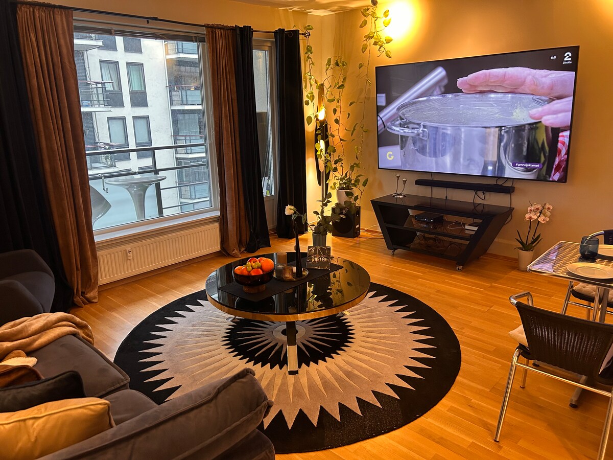 Hola! Et dono la benvinguda al meu apartament modern i elegant a la zona de moda de Barcode/Bjørvika, a Oslo. És coneguda per la seva arquitectura moderna, molts restaurants i una vibrant escena cultural. A prop hi ha llocs emblemàtics com l'Òpera, el Museu Munch, el Museu Deichman i la històrica Fortalesa d'Akershus. Per a les ànimes aventureres, un passeig pel carrer Karl Johan ofereix vistes del Castell Reial i del Parlament. No t'oblidis de gaudir del mar que hi ha a prop i fer el capbussament viking a l'hivern.