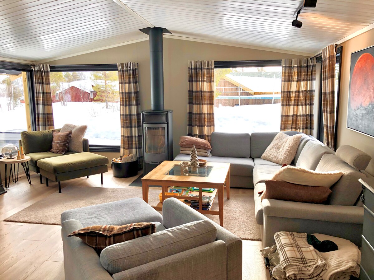 Cabana moderna però acollidora amb grans finestrals que ofereixen unes vistes fantàstiques de la pendent alpina i porten la natura a la sala d'estar. Des del camp de la caseta pots anar directament al camí que porta a Hovdenuten o NOS. La cabana és adequada per a la majoria de persones, també per a diverses famílies amb nens. Bones condicions de sol a la parcel·la de la cabana, on es pot gaudir del sol de la tarda des de la terrassa. Nota: l'inquilí ha de portar llençols, tovalloles de cuina i tovalloles de bany. Nota: No es permet fer festes ni fumar a l'interior.