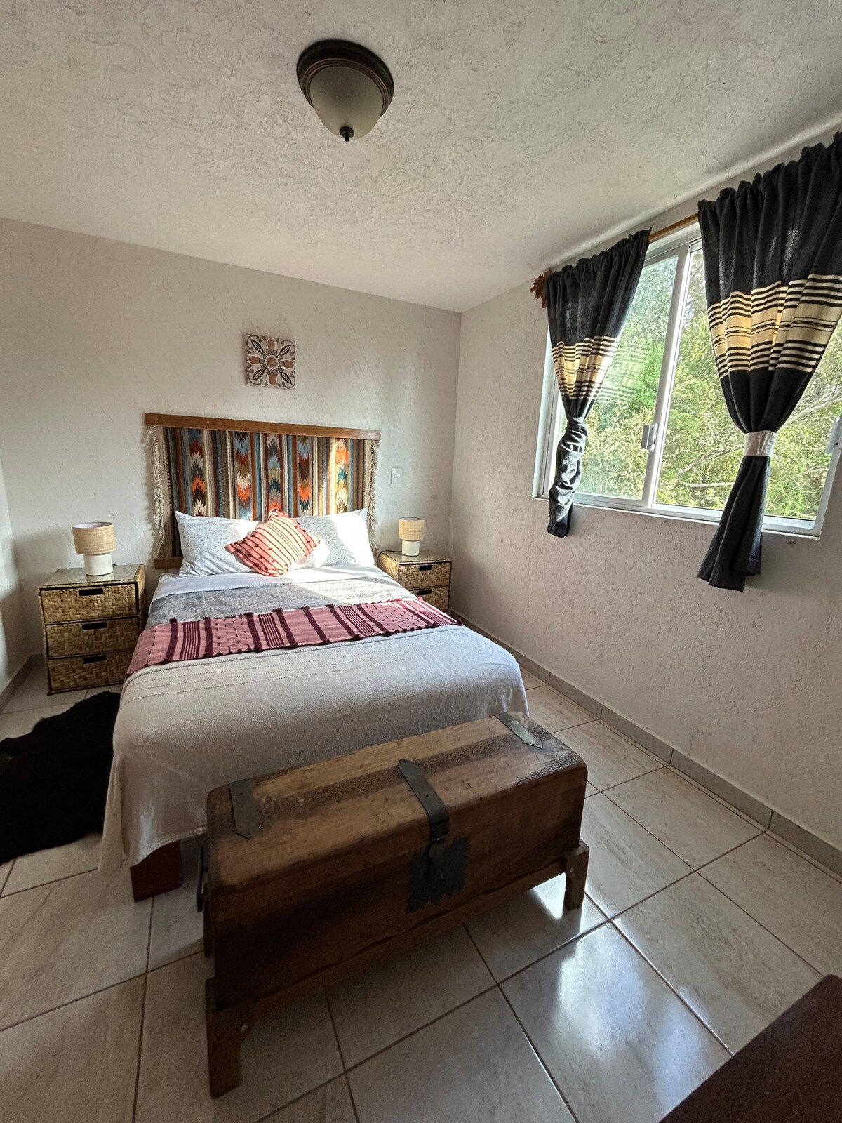 Caseta a només 10 minuts del centre de Pátzcuaro. Amb totes les comoditats i envoltat de natura que faran de la teva estada una experiència de descans i relax. Disposa de llar de foc de llenya, barbacoa i foguera. Zones verdes amb jocs infantils i hamacs. El dormitori principal té un llit «king size» còmode i un bany interior. Cuina equipada amb tot el que necessites per preparar els teus àpats i un menjador panoràmic amb barra per gaudir dels teus àpats o celebracions.