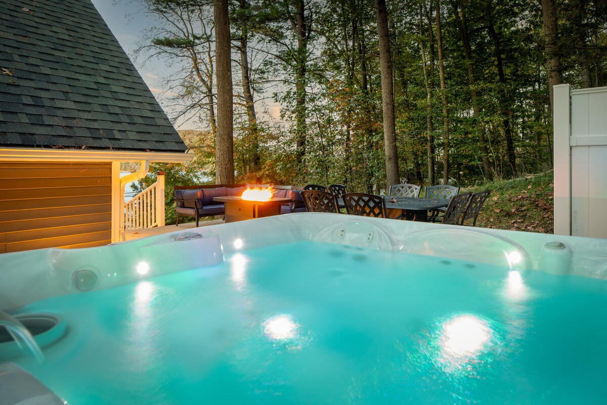 Retir a la vora d'un llac amb banyera d'hidromassatge i vistes a la muntanya a Exhale