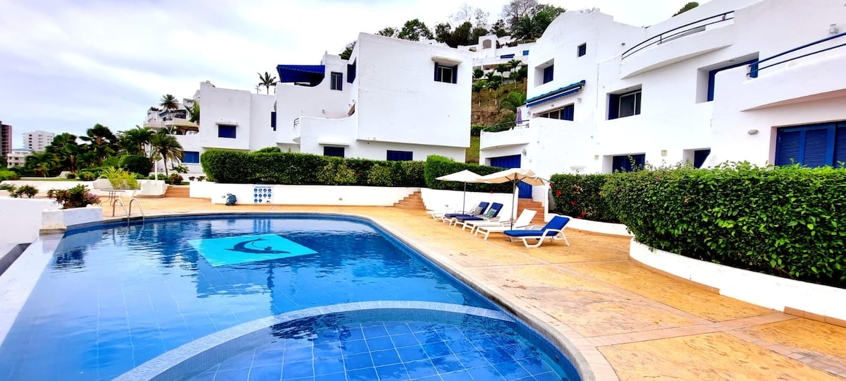 Casa amb tots els serveis, amb piscina pròpia i jacuzzis a part dels comunitaris, decorada amb pintures i mobles originals Home 2000, dues habitacions i cada dormitori amb bany privat. Ideal per descansar en família, s'accepten animals de companyia i adequats per a persones amb discapacitat, disposa d'alarma, vigilant privat (inclòs en el preu) i WIFI fort, a més la criada és molt amable i fabulosa.