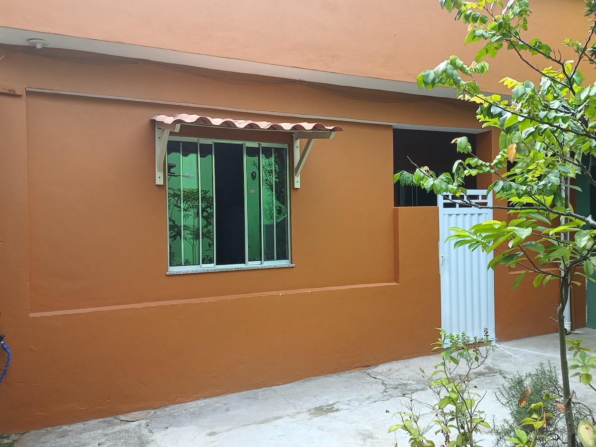 L'espai que s'ofereix és un pis sencer (darrere), compost per una habitació amb bany (suite) i una cuina petita. L'accés és per la porta del garatge. Lloc independent. Hi ha una zona exterior amb una taula de menjador i també un pati de gespa (exclusiu per a aquells que lloguen el pis). Moro en una altra casa al davant de la parcel·la. Espai de garatge per a un vehicle. A 600 metres de la platja de Manguinhos i a 600 metres de la platja de Geribá. Un lloc segur amb molta comoditat. Contacte *21970345988*