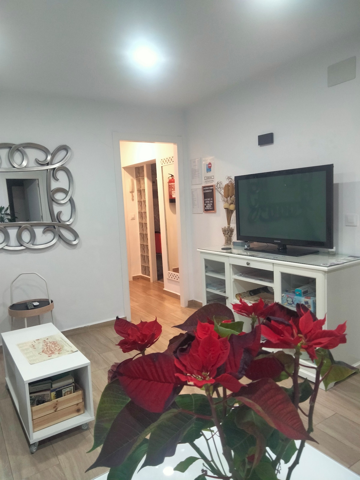 "Apartamento turístico la judería" con aparcamiento (tan solo a 10 m. en una plaza exclusiva para residentes). Totalmente reformada, dos plantas, situada en el corazón de la ciudad, en pleno casco histórico. Muy luminosa en frente del museo de Cáceres y espectaculares vistas a la montaña. Barrio muy tranquilo, sin ruidos ni tráfico, a 2 minutos andando de la plaza de San Jorge, la concatedral y la plaza Mayor. Perfecta para moverse a pie por la ciudad y conocer cada rincón de la parte histórica