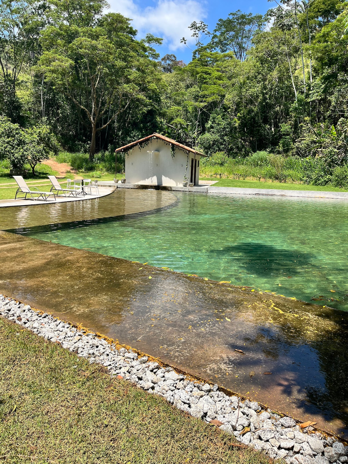 Preciosa casa d'estil provençal amb terrassa privada i piscina amb vistes al rierol. Dues suites precioses amb llits «queen size» i dobles, balcó, aire condicionat i vistes al llac. Altell al costat de la suite principal amb un llit individual, cuina completa, sala d'estar gran, barbacoa portàtil! Ideal per a famílies o moments romàntics a la Serra de Petrópolis. La teva mascota és benvinguda aquí! No permetem esdeveniments a les instal·lacions!
