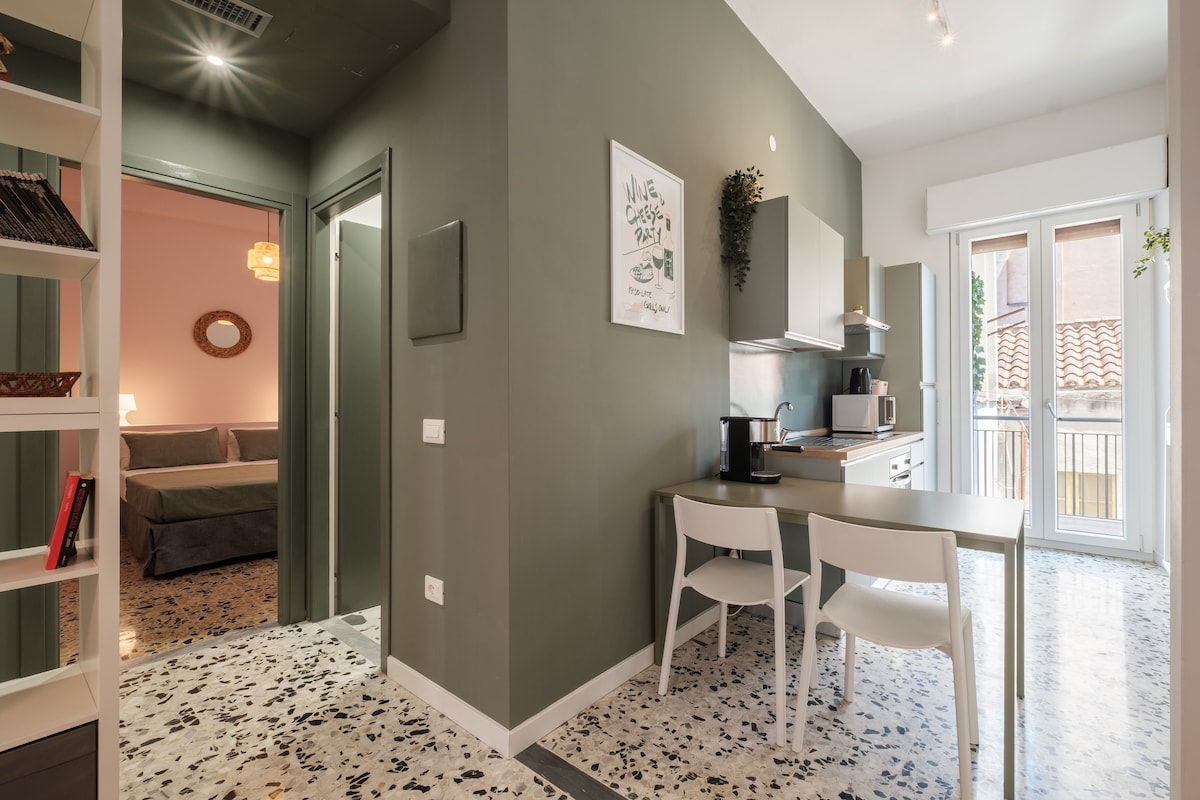 Estudi de 35 metres quadrats al cor del centre històric de Càgleri, al barri de Marina, a 200 metres del port esportiu. És ideal per a parelles, viatgers solitaris i viatges de negocis. L'apartament forma part d'un «Palazzetto Sardo» de finals de la dècada de 1860, que s'ha renovat completament, conservant-ne les característiques tradicionals i afegint-hi elements moderns i funcionals. El pis és molt tranquil, tot i que és al centre, gràcies a les finestres de doble vidre i a les cortines insonoritzades.