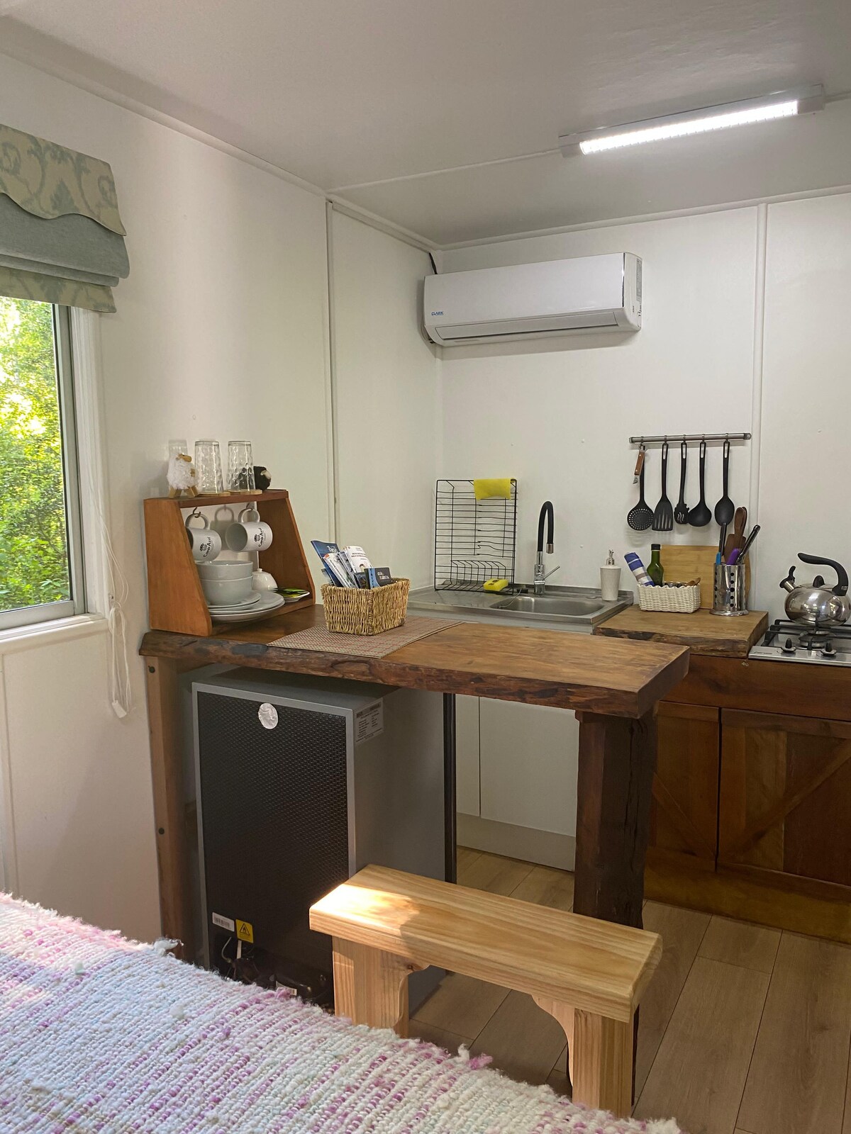 Acogedora Tiny house en medio de bosque nativo de hualles y arrayanes. Cercana a atractivos turísticos como el Salto del Nilahue, Playa el Arenal, Playa Epulafquen, Riñinahue y Calcurrupe.
